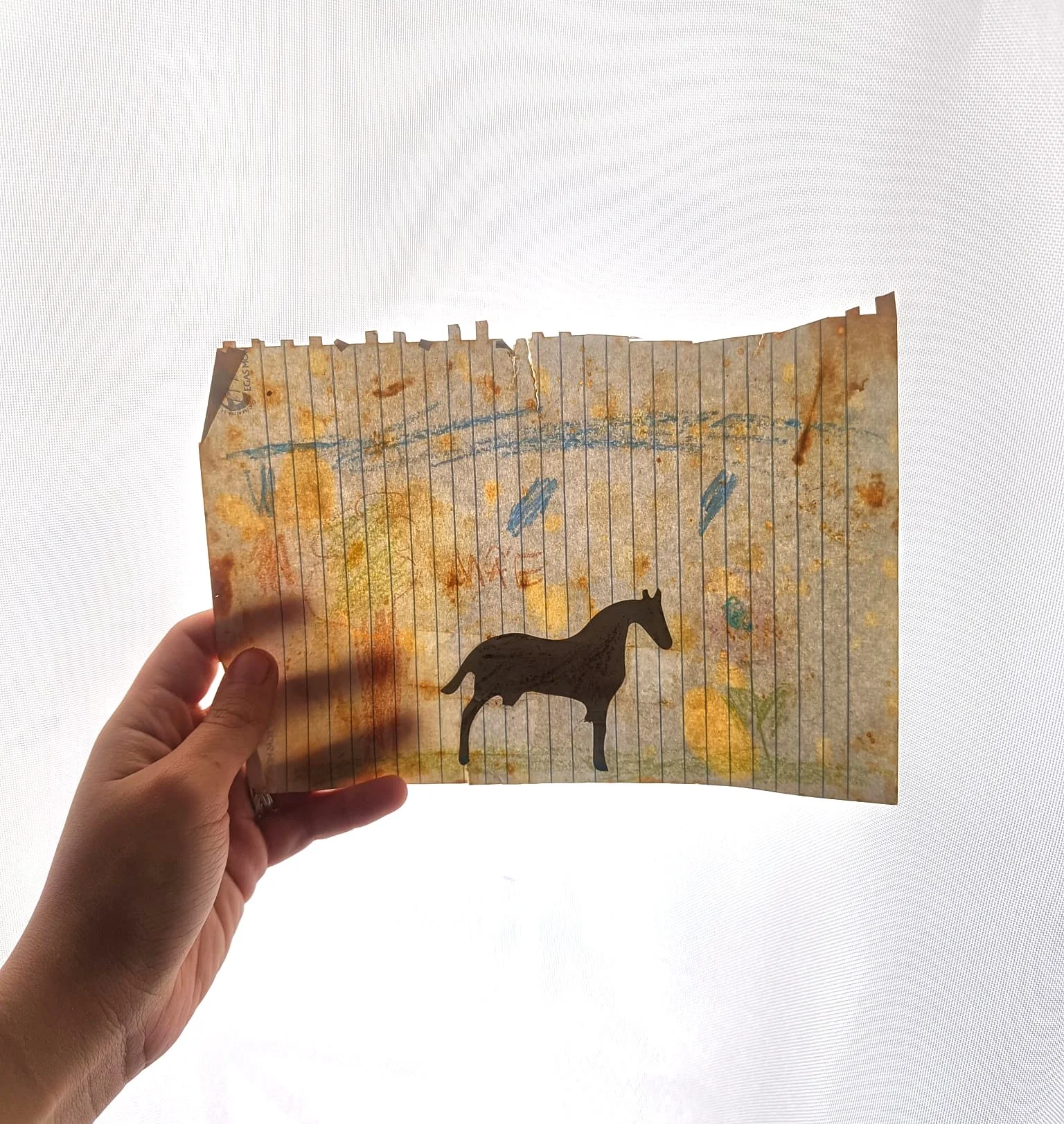 The receipt I’m submitting is a childhood drawing I made at five years old of my mother as a horse. I don’t know why I drew it then, and I still don’t fully understand it now. It is a trace of a self trying to make sense of a life shaped by endurance, silence, and unseen pressures, proof of a version of me that was unknowing, stubborn, and already carrying weight I couldn’t yet name.